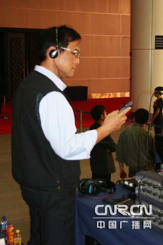 中央臺記者馮悅與大連站記者賈鐵生討論連線報道計劃