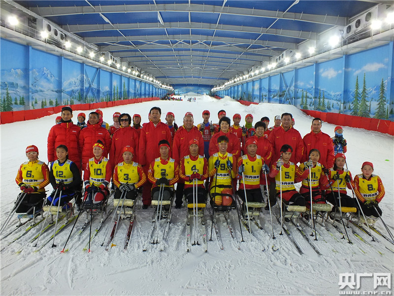 與殘疾人冰雪運(yùn)動(dòng)隊(duì)員合影