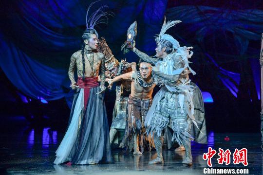 中新網(wǎng)海口4月12日電 (洪堅(jiān)鵬)由海南省保亭黎族苗族自治縣與中國煤礦文工團(tuán)共同創(chuàng)作的大型現(xiàn)代民族舞劇《甘工鳥》12日晚在?谑籽,將黎族人與鳥的傳統(tǒng)故事搬上舞臺(tái),并以唯美的演技,精彩炫目的舞臺(tái)、燈光效果呈現(xiàn)出來。