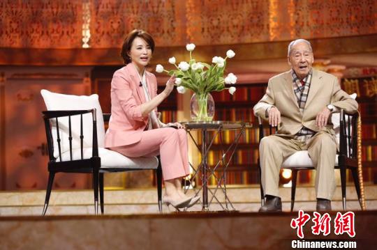 《朗讀者》錄制現(xiàn)場董卿采訪翻譯家許淵沖。