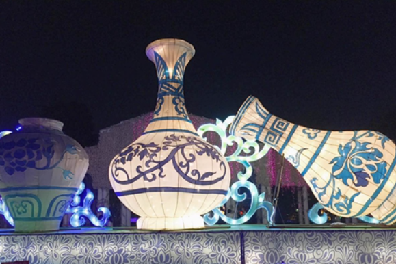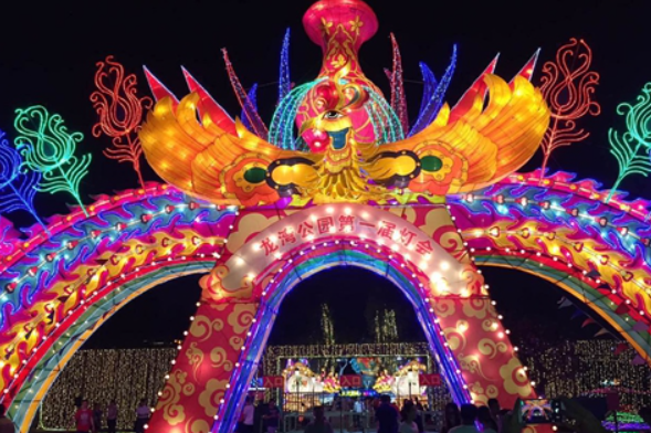 用彩燈傳統(tǒng)的制作工藝和最前沿的科學(xué)照明技術(shù)結(jié)合起來,既有濃郁的中國(guó)風(fēng),又有時(shí)尚新潮風(fēng),還有小朋友喜歡的卡通風(fēng)格,以及眾多主題的燈廊、燈柱、燈雕畫廊的融合穿插,龍灣公園成為燈彩的夢(mèng)幻世界,充滿濃濃的民族文化跟唯美浪漫的氛圍。