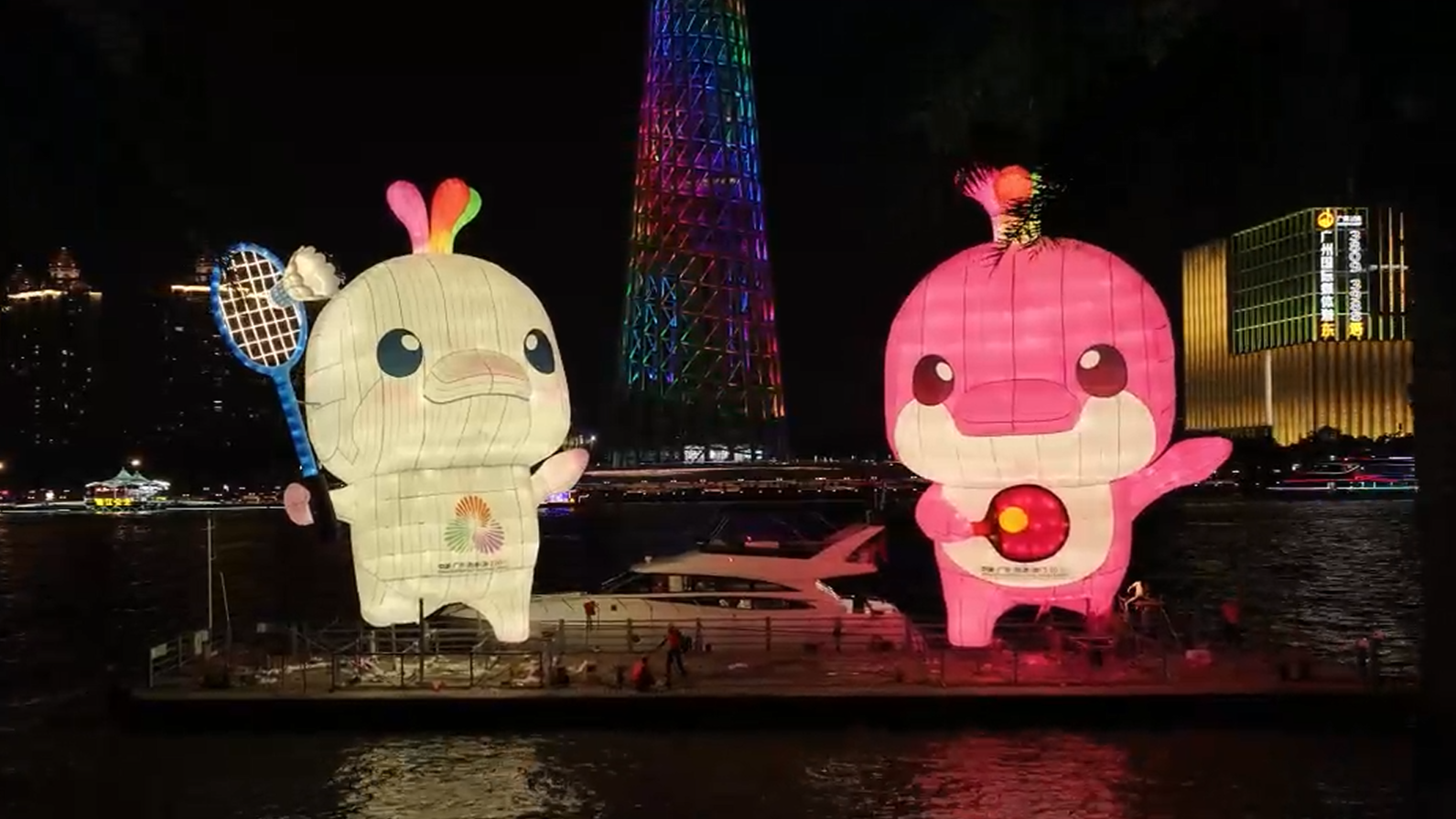 “喜洋洋”“樂融融”廣州塔下點(diǎn)亮珠江