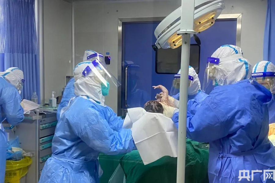 據(jù)主刀醫(yī)生陳汝芳介紹,該手術(shù)有兩大難點,“一是麻醉師穿著防護(hù)服,戴著防護(hù)罩,還有三層手套;二是手術(shù)醫(yī)生操作不便,視線也不是很清晰。”