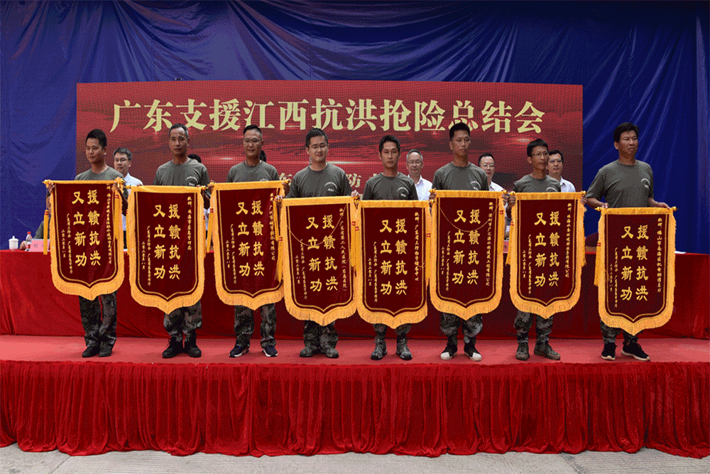 8月31日上午,在廣東支援江西抗洪搶險表彰總結會上,廣東省三防辦、廣東省應急管理廳對廣州水投集團廣州排水公司搶險隊授予“援贛抗洪 又立新功”錦旗,對何東權、陸偉良、梁斌、胡福銳、劉澤明、周家倫、袁文杰7名同志頒發(fā)了“江西抗洪搶險先進個人”榮譽證書。