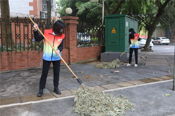 職工拿起笤帚清掃街道(央廣網(wǎng)發(fā) 中建八局南方公司供圖)