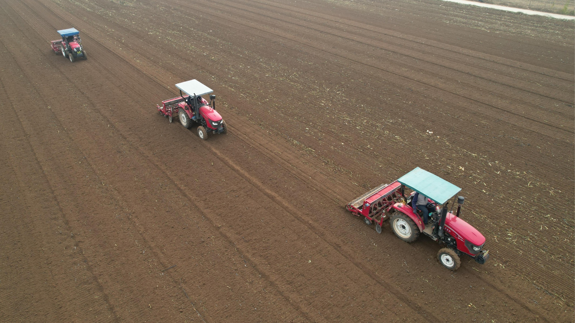 10月30日,在河北省順平縣東下叔村萬源家庭農(nóng)場富硒小麥種植基地,當(dāng)?shù)剞r(nóng)戶正抓緊播種冬小麥。