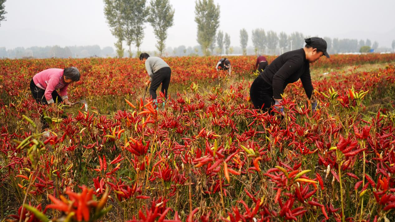 近日,河北省曲陽縣羊平鎮(zhèn)的百畝辣椒種植基地迎來了火紅的豐收。田間地頭,簇簇辣椒掛滿枝頭,色澤鮮亮,農(nóng)戶們正忙著采摘,一派繁忙的豐收景象。