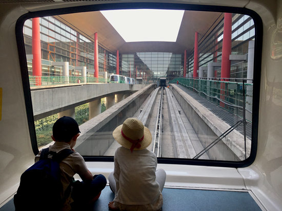 首都機場T3航站樓,前往國際登機口的小火車上,兩個孩子并排坐著看著外面。一到假期,首都機場每天進出港人數(shù)達到幾十萬,其中許多是中小學(xué)生前往世界各地。笑槑/攝
