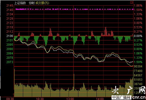 收盤:滬指跌1.58%失守2100點 權(quán)重疲軟