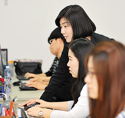 4月28日,電商孵化器總經(jīng)理張薇(中)與入駐的大學(xué)生創(chuàng)業(yè)者進(jìn)行交流和項(xiàng)目指導(dǎo)。她從青年創(chuàng)業(yè)者轉(zhuǎn)身為創(chuàng)業(yè)服務(wù)者。 連 漪攝(新華社發(fā))