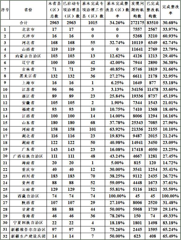 嚴查!黑龍江校外培訓機構(gòu)整改完成率達32.95%,日前,教育部辦公廳印發(fā)《關(guān)于全國校外培訓機構(gòu)專項治理行動整改工作進展情況的通報》,截至2018年10月15日,全國共摸排校外培訓機構(gòu)400532所,存在問題機構(gòu)272175所,現(xiàn)已完成整改83510所,完成整改率30.68% 。