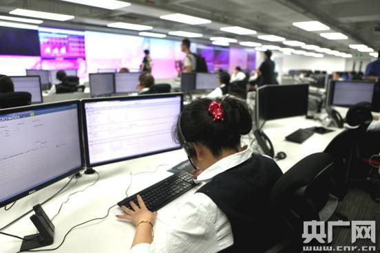 三菱電梯遠(yuǎn)程中心控制室里,工作人員實時監(jiān)測全國電梯的運行情況 央廣網(wǎng)記者高藝寧攝