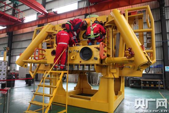 美鉆工作人員檢修水下采油設(shè)備 央廣網(wǎng)記者高藝寧攝