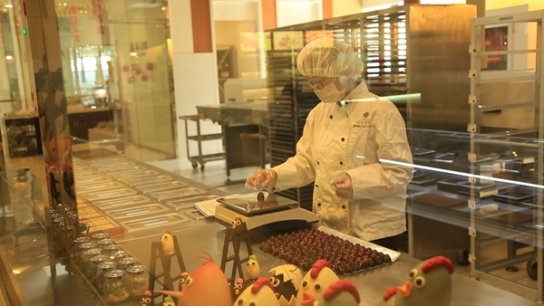 “我平時(shí)主要負(fù)責(zé)生產(chǎn)線和巧克力產(chǎn)品的質(zhì)檢工作,品評(píng)剛研發(fā)出來的巧克力新品,如新特制的辣味巧克力、加跳跳糖或水果制品的巧克力等等。工作流程很像巧克力城堡里的管家!