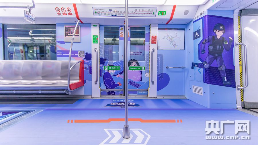 據(jù)介紹,反恐防恐主題宣傳專列用3D畫面打造沉浸式體驗(yàn)感,把地鐵打造成“行駛中的反恐安全體驗(yàn)館”,以“防恐反恐是一項(xiàng)全民行動(dòng)”為主線,每節(jié)車廂精心打造不同的主題場(chǎng)景,選擇最輕松快樂的表現(xiàn)形式,通過(guò)最淺顯易懂的漫畫、朋友圈語(yǔ)言,讓“反恐防恐”宣傳更接地氣,也更有溫度,使文本上的法規(guī)“活起來(lái)”,更有效地提升全民反恐力。