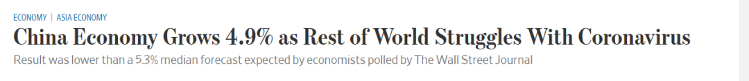 美國《華爾街日?qǐng)?bào)》的報(bào)道重點(diǎn)關(guān)注了中國經(jīng)濟(jì)復(fù)蘇的進(jìn)程。題為《世界其他國家掙扎應(yīng)對(duì)新冠病毒,中國經(jīng)濟(jì)增長4.9%》的報(bào)道把2020年的中國經(jīng)濟(jì)分為三個(gè)階段: