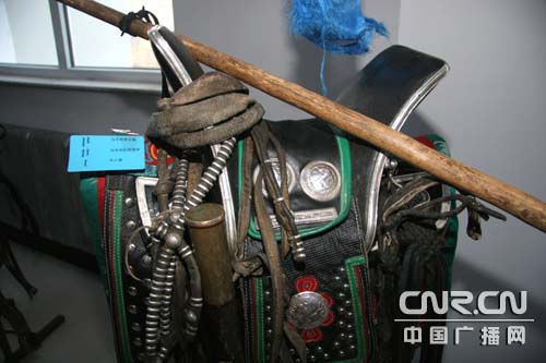 馬鞍、馬具與套馬桿 中廣網(wǎng)呼和浩特1月30日消息 (記者阿都欽)千百年來,內(nèi)蒙古大草原孕育出燦爛的民族文化,保護、傳承一種歷史文化就等于擁有了一個世界。前不久,在內(nèi)蒙古東烏旗舉辦的第四屆“吉祥·烏珠穆沁”草原冰雪那達慕期間,這里舉辦了一個別開生面的馬具展覽。展出的馬鞍、馬具用呂、套馬桿等展品都是出自牧民之手。開展時展覽館人頭攢動,很是吸引觀眾的眼球。