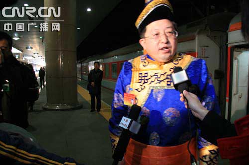 內(nèi)蒙古團(tuán)代表剛下火車,一位代表接受采訪