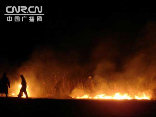 火情就是命令,接到報警后,中隊迅速組織出動2輛消防車,18名指戰(zhàn)員火速趕赴現場。當消防官兵接近收費站時就能看到飛舞的火焰.到達現場后,發(fā)現著火的蘆葦靠近保護區(qū)內,是三處比較分散部分燃燒起的火勢,現火勢正在向四周蔓延開來,里側的部分蘆葦已被燒毀。所幸沒有起風,否則后果不堪設想,當務之急是馬上對著火的蘆葦進行撲救,但是由于著火部位距離消防車停靠的位置太遠,并且著火點比較分散。鑒于此,現場指揮員決定,放棄利用水槍撲救。把人員分為三組,分別對三處著火點,用樹枝、爛抹布等撲火工具對火勢進行撲救。經過消防官兵的不懈努力,23時36分,幾處蘆葦叢的火勢終于被撲滅。由于消防官兵的及時撲救,避免了蘆葦大面積燃燒,有效保證了自然保護區(qū)內的良好環(huán)境。