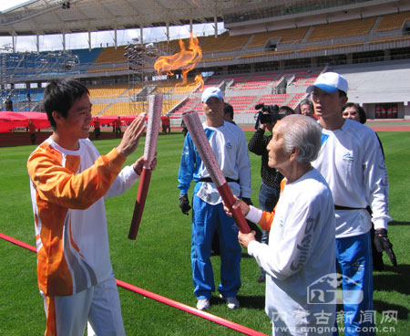 十一時許,隨著最后一棒火炬手陳國義高擎“祥云”火炬,抵達設(shè)在呼和浩特市體育場的火炬?zhèn)鬟f終點,并點燃圣火盆,北京殘奧會火炬呼和浩特站傳遞活動順利結(jié)束。