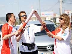 全二平,一名來自內(nèi)蒙古自治區(qū)的普通的鄉(xiāng)村郵遞員,29日中午他作為第二十六棒火炬手高舉奧林匹克圣火,踏上了希臘古老的馬拉松之路。
