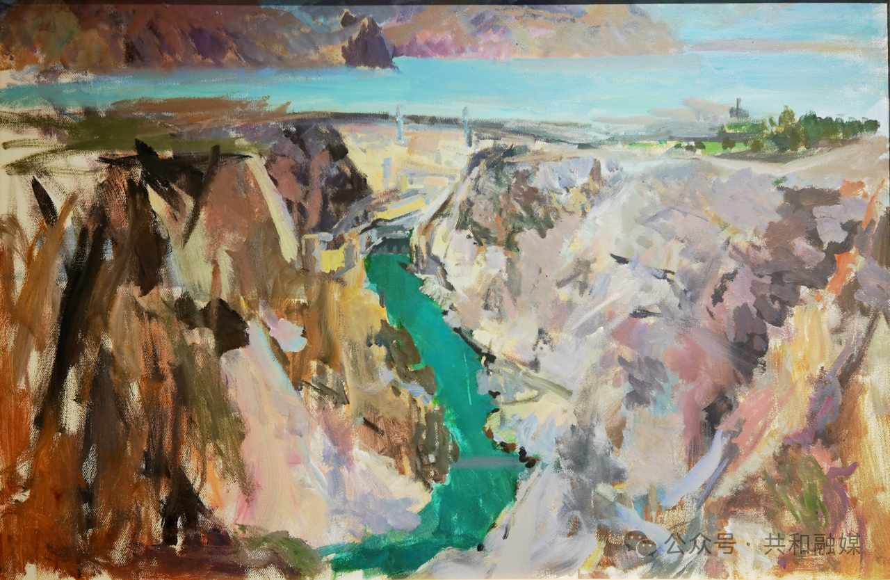 秦川《龍羊峽大壩1》油畫80cm×60cm