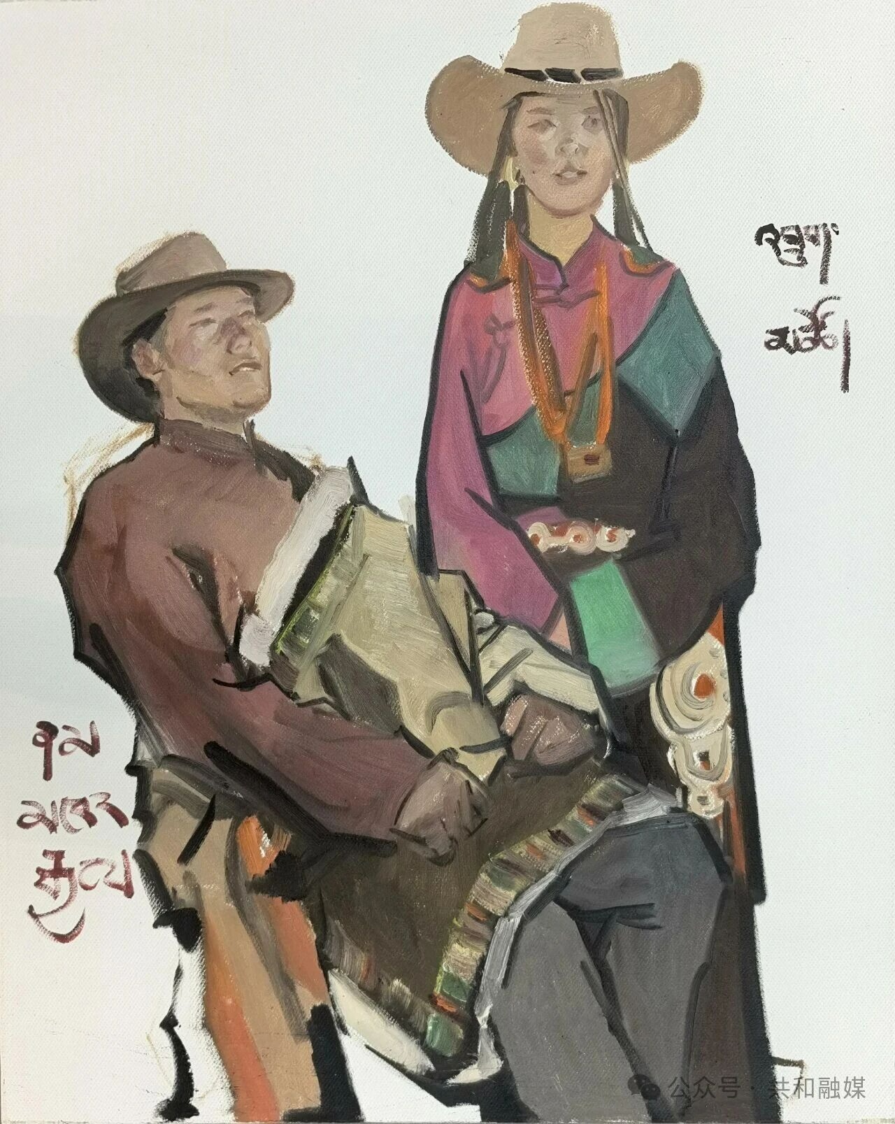 韻文江《藏族男青年》布面丙烯60cm×80cm
