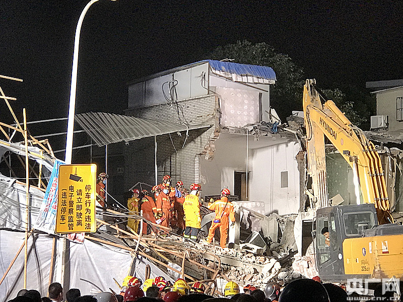 搜救出第四名傷者后,搜救行動繼續(xù)進行 央廣網(wǎng)記者唐奇云 攝