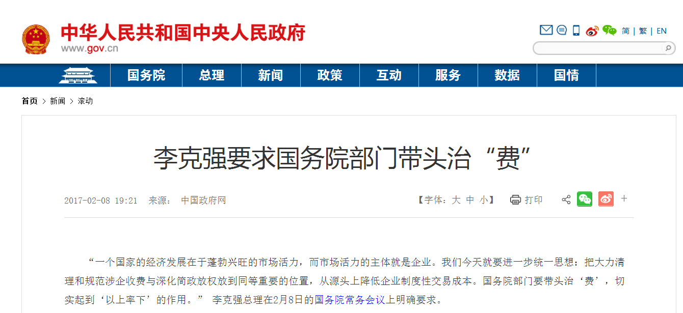 “現(xiàn)在許多企業(yè)呼聲最普遍的一個(gè)問題,就是各種‘費(fèi)’不僅項(xiàng)目繁多,而且征收不規(guī)范! 李克強(qiáng)總理在近日國務(wù)院常務(wù)會(huì)議上強(qiáng)調(diào),國務(wù)院部門要帶頭治“費(fèi)”,抓緊清理,到今年年底讓市場主體切實(shí)感受到清費(fèi)成效!