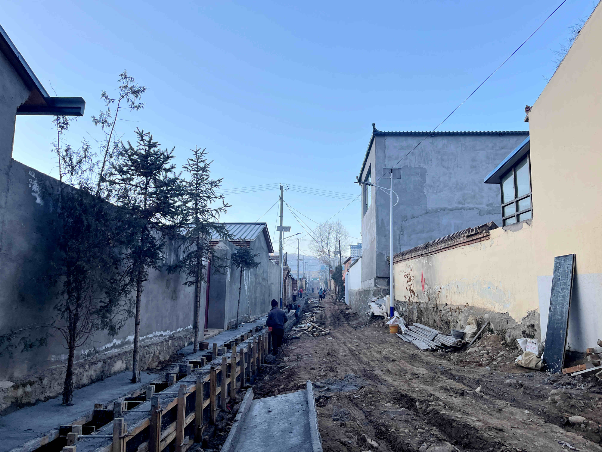 在澤庫縣拉卡移民點,基礎(chǔ)設(shè)施改造工程正在緊張施工。這里是三江源生態(tài)移民的重要安置點,125戶牧民在此定居多年,面臨水管凍裂、排水不暢、路面破損等難題。天津投入481萬元,從修建雨水邊溝、更換自來水管、硬化路面及加裝路燈,切實解決百姓急難愁盼。