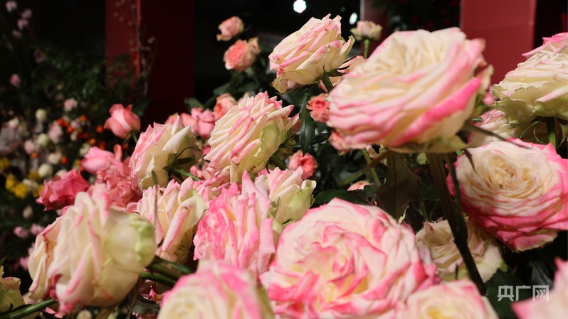 色彩繽紛、形態(tài)各異的月季新品種簇?fù)砭`放,清新馥郁的香氣縈繞展臺,吸引了眾多觀眾駐足欣賞。