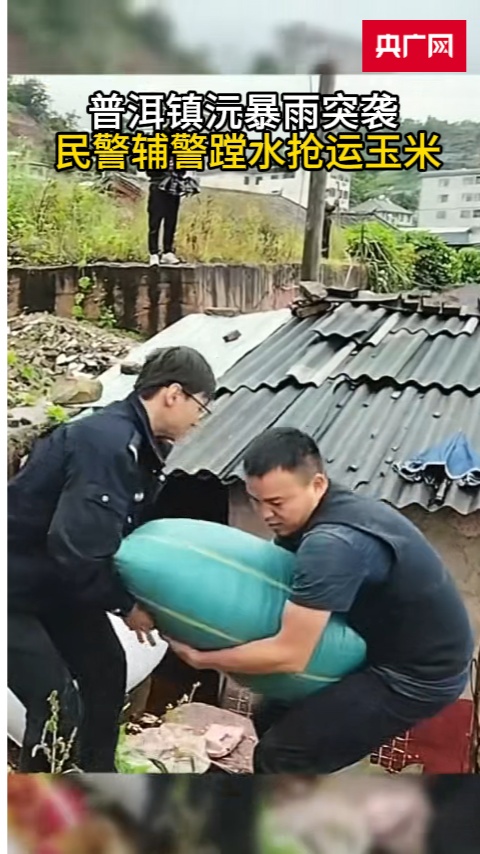 暴雨突襲普洱鎮(zhèn)沅,民警輔警蹚水轉(zhuǎn)運400公斤玉米。
