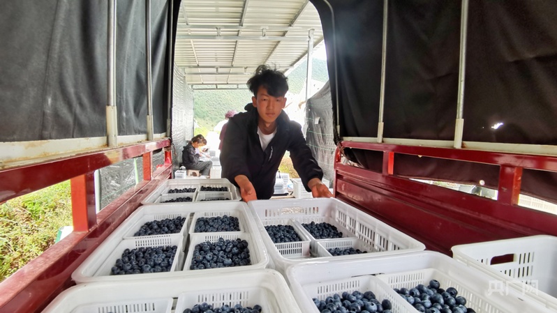 一簇簇藍莓掛滿枝頭,果實飽滿透亮,成為當地村民增收的重要來源。