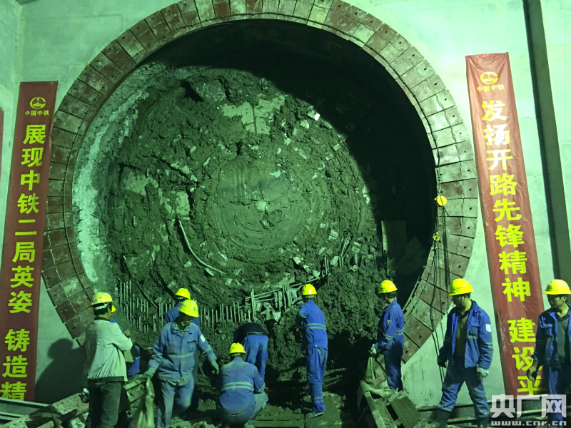 由中國(guó)中鐵二局承建的陳家營(yíng)站大河埂站區(qū)間,隧道右線長(zhǎng)786米,隧道最深處達(dá)地下12米。盾構(gòu)機(jī)沿金川路向南推進(jìn),穿越沙溝河大橋、周邊建筑物及大量地下管線。在高風(fēng)險(xiǎn)隧道施工的考驗(yàn)下,為確保盾構(gòu)隧道安全有效推進(jìn),中鐵二局采取多項(xiàng)措施,在盾構(gòu)推進(jìn)過(guò)程中加大過(guò)程監(jiān)督和檢查力度、嚴(yán)格控制盾構(gòu)掘進(jìn)姿態(tài)、保證壁后注漿效果、進(jìn)行渣土取樣分析以及地面沉降監(jiān)控,不斷摸索改進(jìn)施工工藝,保證了盾構(gòu)隧道安全順利貫通。