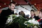 抵京小貝下車(chē)為球迷簽名 球迷狂喊I love you