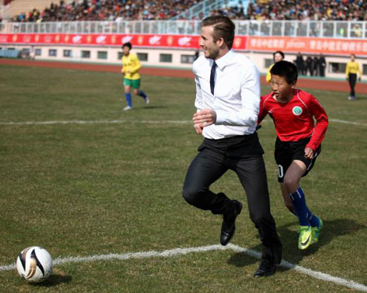 貝克漢姆亮相青島 與小球員們互動(dòng)